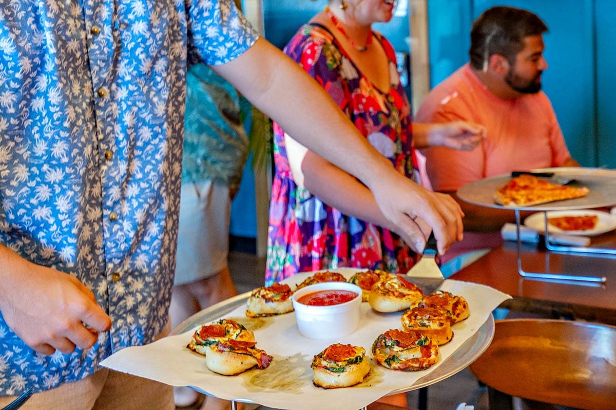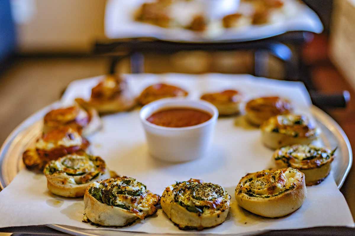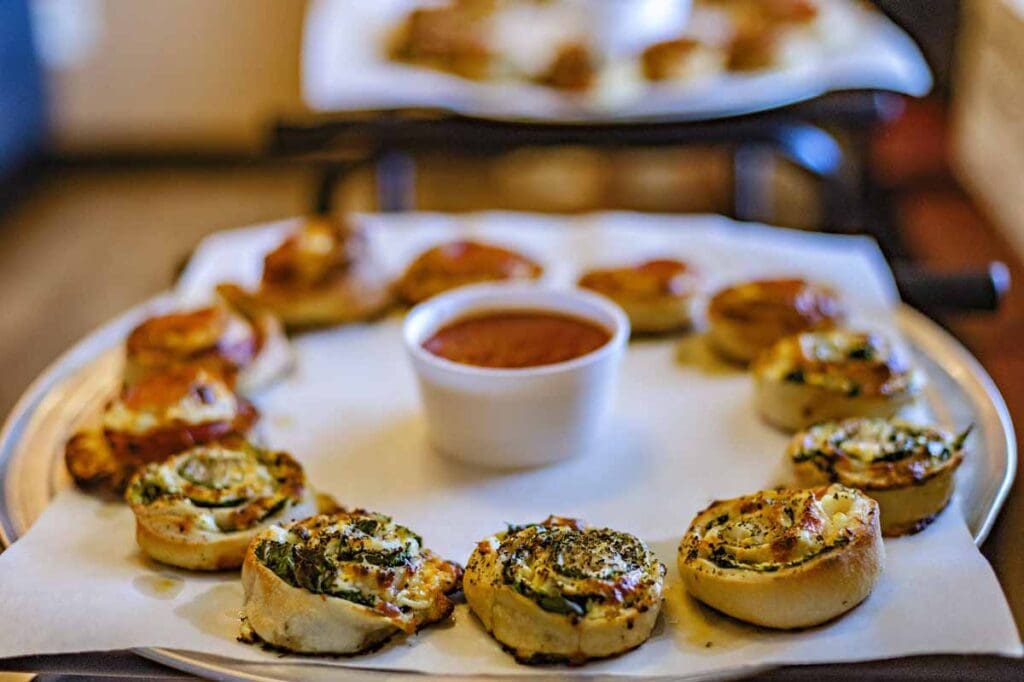 Since 2015, our house-rolled Rip Coyles have been the Outer Banks’ favorite pre-slice snack: crispy, garlicky swirls of pizza dough with melty centers, served Cheesy, Pepperoni, or Spinach with marinara for dipping. Simple, handmade, and dangerously shareable.